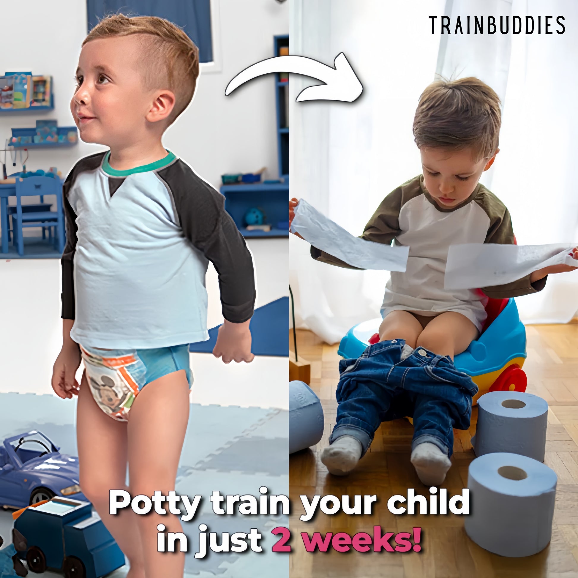 TrainBuddies™ is real underwear that helps your toddler potty train faster — with fewer messes and more wins. 🚽