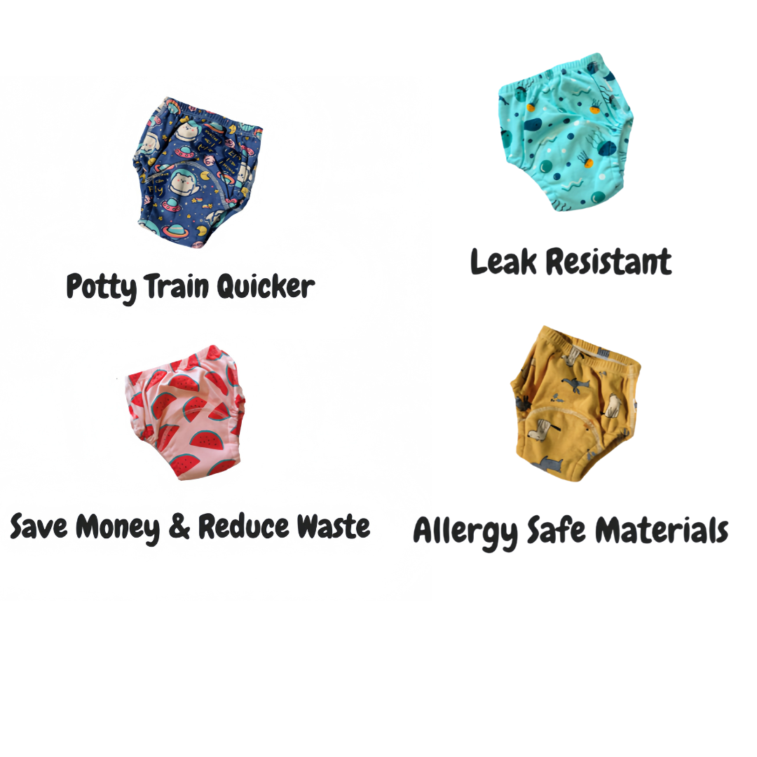 Every material that touches the skin is 100% cotton making our training pants hypoallergenic.